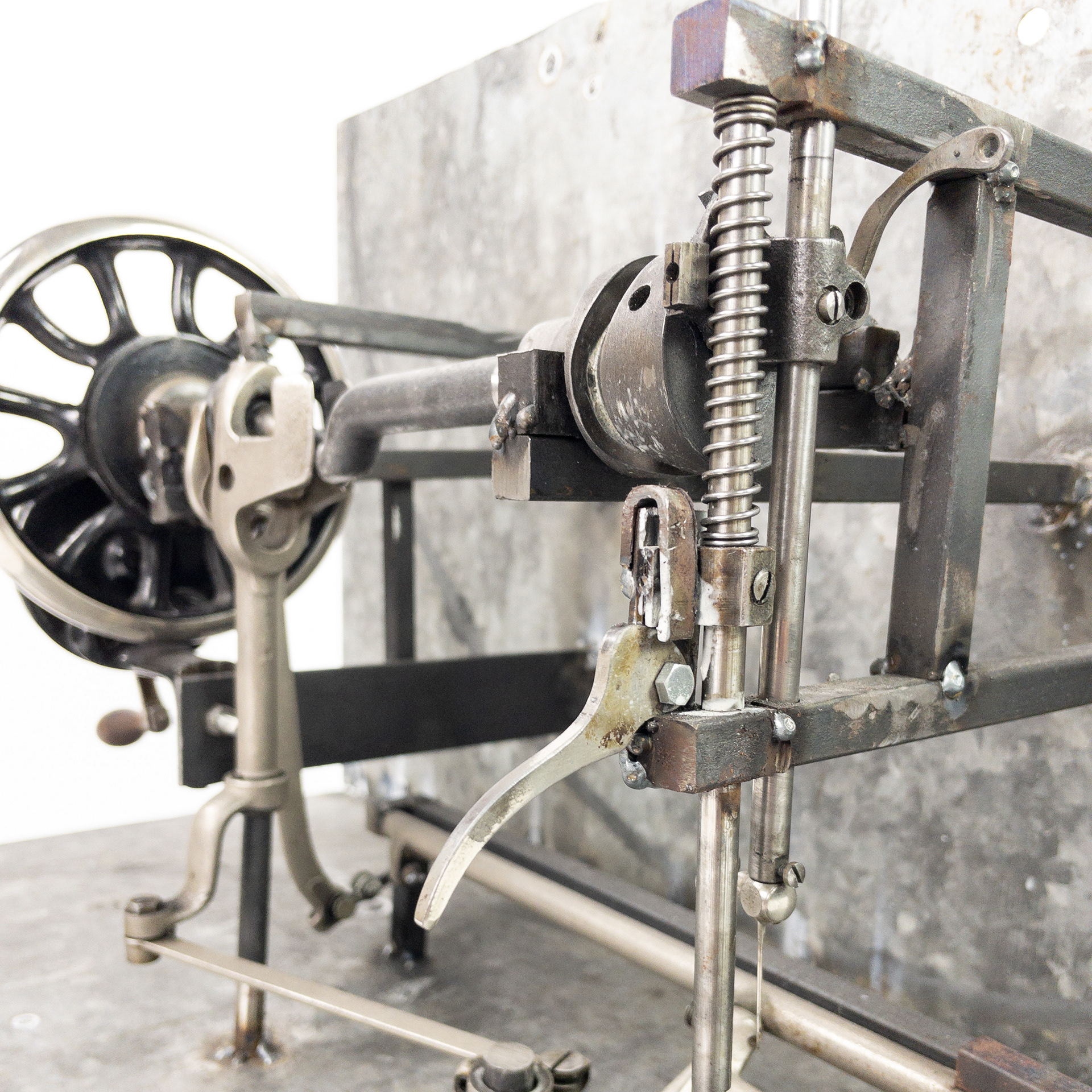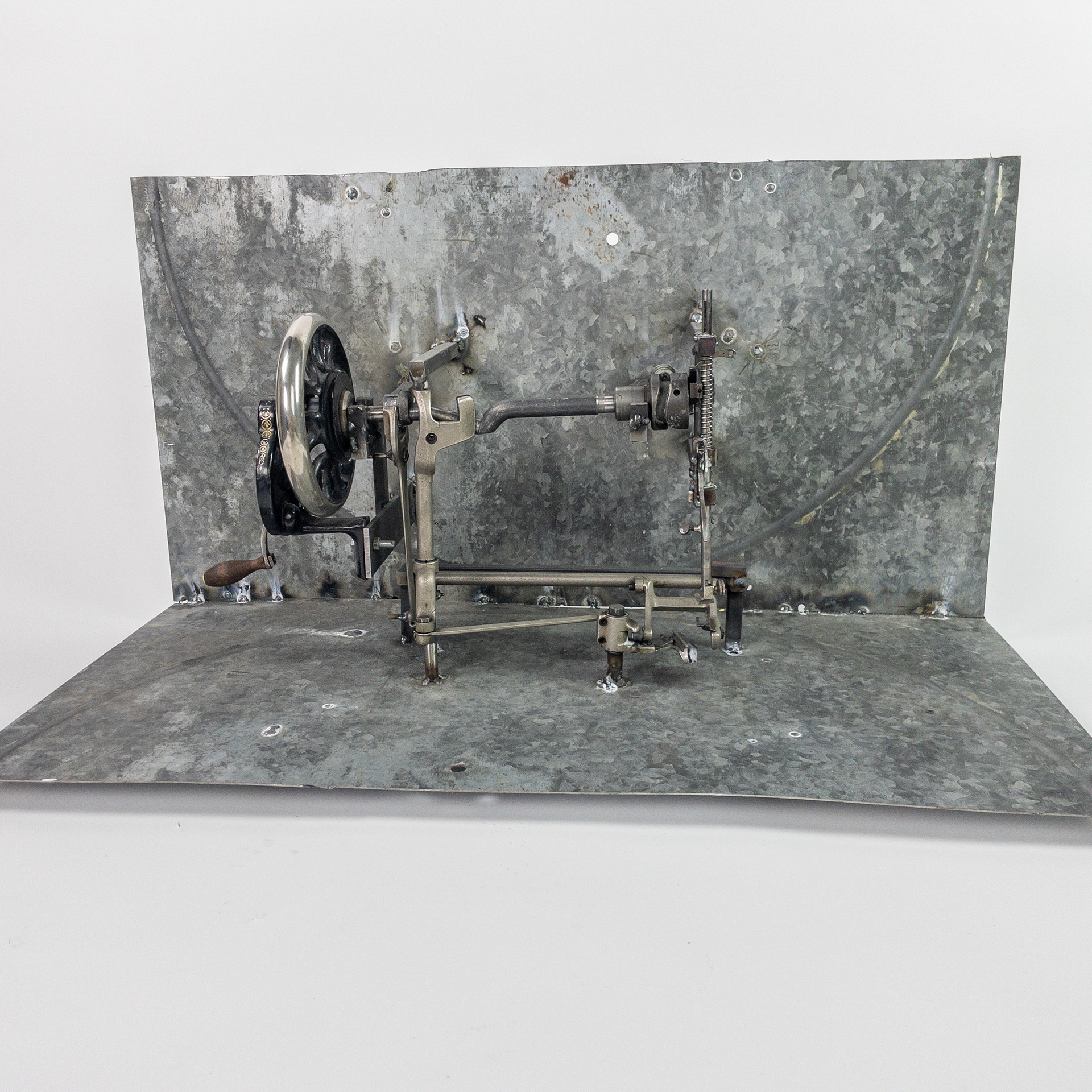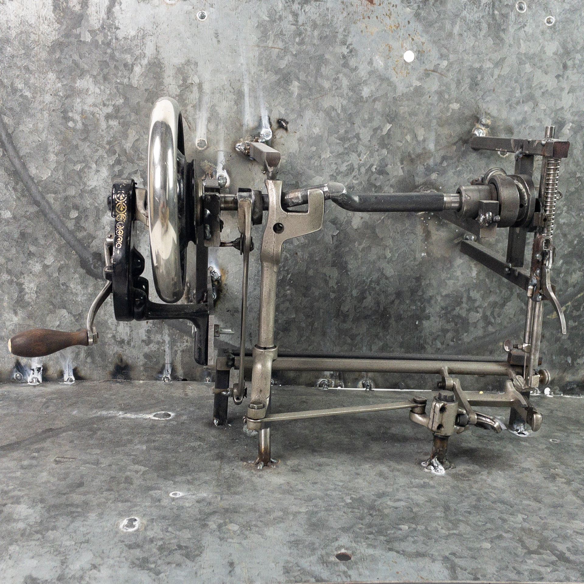 Exploded view of a vintage Singer sewing machine. Aligned and connected the parts so you can see how all the parts move inside a 19th century sewing machine.